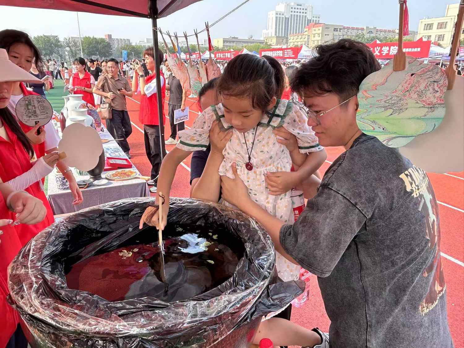 美术学院:以水为媒、以漆为笔、以扇为纸,手把手教新生体验漆扇制作过程,传承中华优秀传统文化,勉励学生奋进、拼搏、不负韶华。