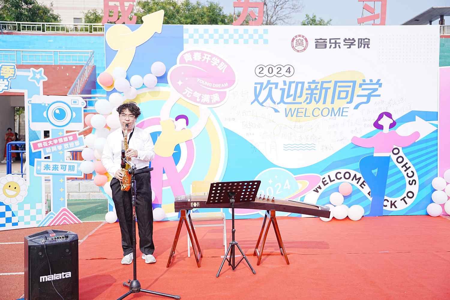 音乐学院:精心为每位新生定制“专属可乐”;设置多个创意打卡点,记录入学珍贵瞬间;搭建音乐“小舞台”,“老带新”施展才艺。