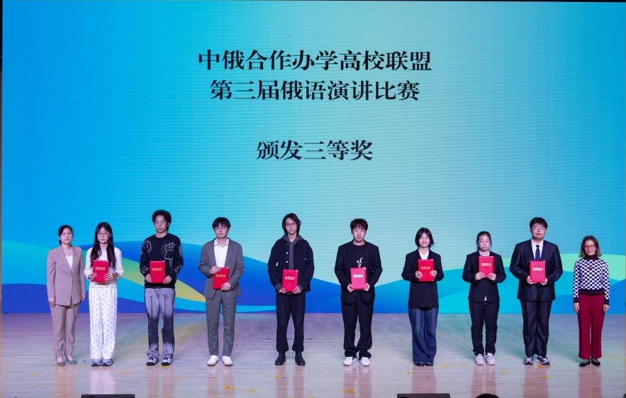 期间,举行了中俄合作办学高校第三届俄语演讲比赛全国总决赛,来自全国27所中俄合作办学高校共88名学生代表参加比赛。2023级化学(中外合作办学)专业学生卢柯伊荣获三等奖,李宁、刘晔获“优秀指导教师”奖。