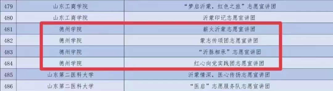 近日,团中央青年志愿者行动指导中心、中共遵义市委、中共临沂市委等部门联合公布了《关于遴选2024年全国大学生沂蒙精神志愿宣讲团的公告》《关于遴选2024年全国大学生遵义会议精神志愿宣讲团的公告》。我校4支团队入选2024年全国大学生沂蒙精神志愿宣讲团,1支团队入选2024年全国大学生遵义会议精神志愿宣讲团,入选数量居省内同类院校前列。
