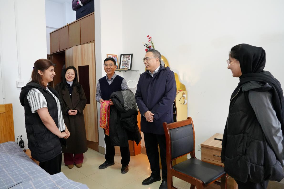 1月23日,在农历新年即将到来之际,学校党委委员、副校长刘印房对在校留学生进行走访,并送上新春祝福。