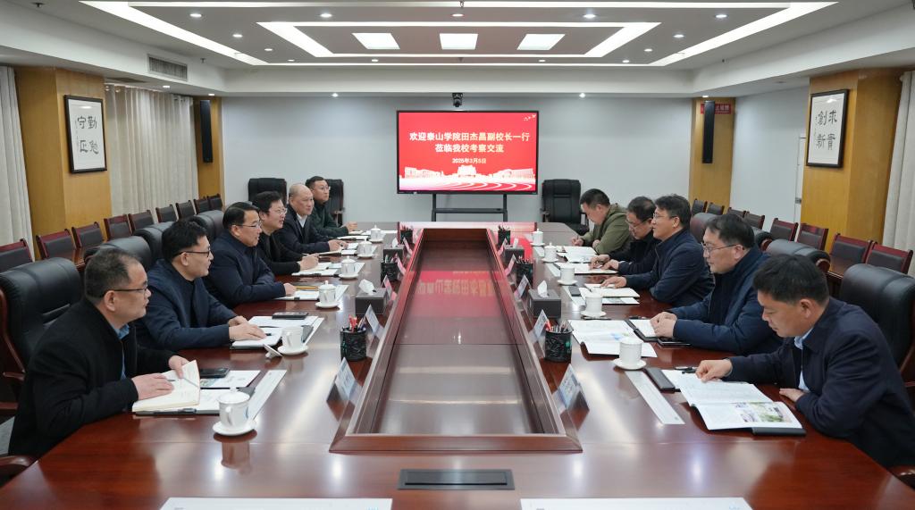 3月5日下午,泰山学院党委委员、副校长田杰昌一行来开云网址合集考察交流。我校党委委员、副校长单振涛热情接待了田杰昌一行并举行座谈。