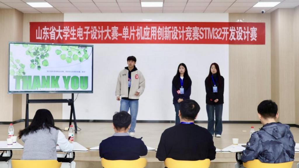 11月15日上午,第十七届山东省大学生电子设计大赛——单片机应用创新设计竞赛(本科组)STM32开发设计赛(决赛)在我校大学生创业赋能中心成功举办。本次竞赛由山东省科学技术协会、山东省教育厅等六部门联合主办,山东省电子协会与我校物理与电子信息学院联合承办,山东省信息产业学会及华清远见教育科技集团共同协办。作为省内电子设计领域具有广泛影响力的重要赛事,自启动以来便受到广泛关注。经过初赛阶段的线上评审,最终16支精英团队脱颖而出,晋级决赛。