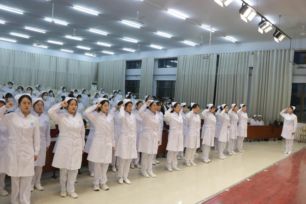 5月12日,医药与护理学院“5·12”国际护士节护理技能大赛颁奖仪式在求实楼0409报告厅举行。颁奖结束后,护理系教师为学生代表授帽,并举行了宣誓仪式。
