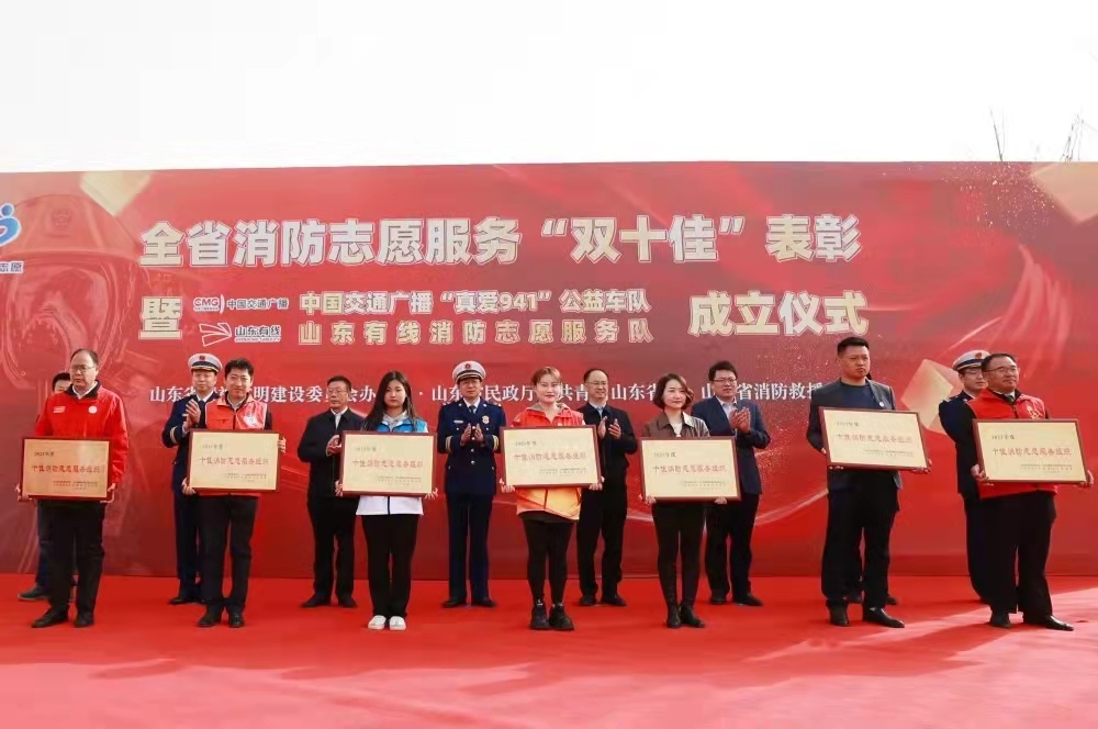 山东省消防志愿服务“双十佳”表彰暨省级消防志愿服务队成立仪式由山东省消防总队、山东省精神文明建设委员会办公室、山东省民政厅、共青团山东省委联合举办,表彰10名在全省消防志愿服务工作中表现突出的集体和个人,我校从全省890支消防志愿服务队中脱颖而出,获得“十佳消防志愿服务组织”荣誉称号。
