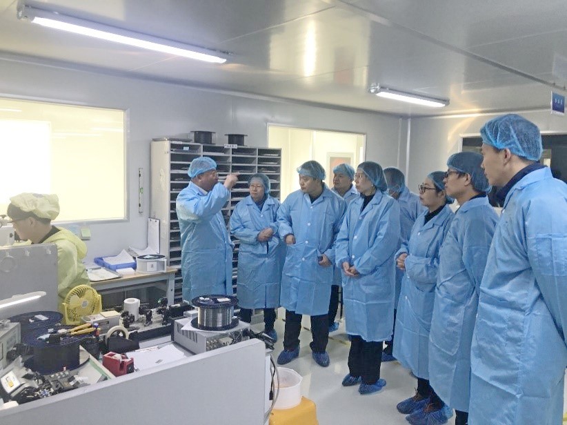 越海科技集团成立于2015年,下属德州越海光通信科技有限公司、德州凯瑞飞秒激光技术有限公司、德州智鑫电子科技有限公司。主要生产光通信产品、光线传感器、智能终端设备、飞秒激光器技术和智能九轴六联动精密运动平台系统。在参观了厂区和超净间车间后,双方进行了深入洽谈,并初步达成了合作意向,以期在后续校企合作、人才共享、产业学院建设及实习实训等方面实现互惠互利、打造双赢。