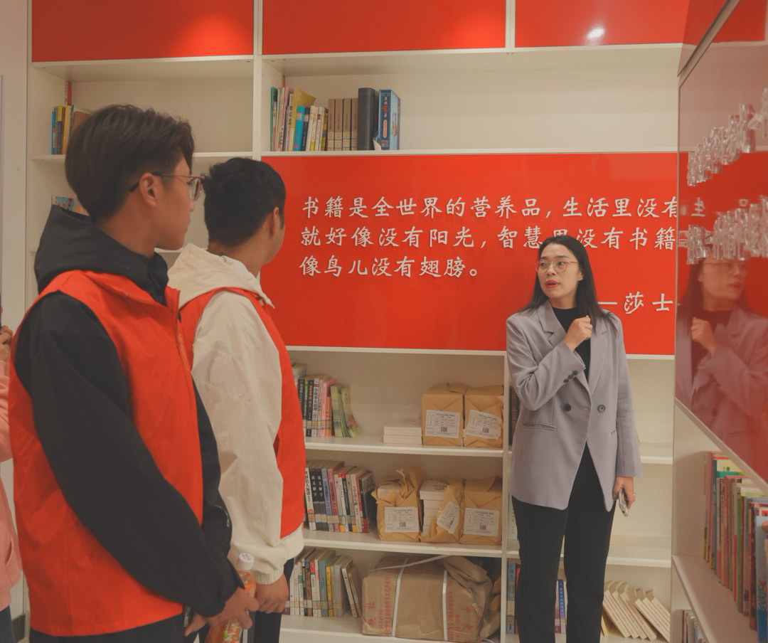 罗南社区党支部副书记乜经平带领同学们参观了居民学法室、学而书屋、青年民兵之家等活动室,为同学们介绍了社区的发展成果,并在党史文化长廊与大家一起重温党的光辉历程。