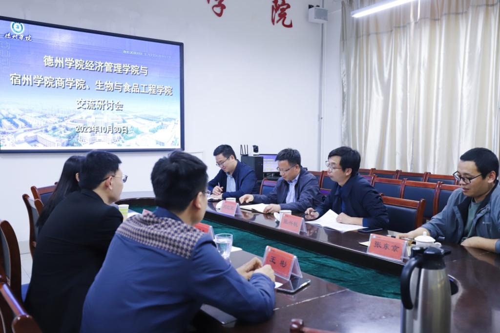座谈会上,经济管理学院负责人介绍了德州扒鸡食品现代产业学院的整体情况,从办学定位与服务产业、前提基础与建设成效、育人模式与建设举措、治理结构和运行模式、支撑保障与发展规划等方面进行了经验分享。宿州学院商学院和生物与食品工程学院等负责人也介绍了宿州学院实习实训基地和产业学院建设的情况。双方就产业学院建设具体工作进行了深入交流,围绕产业学院的人才培养模式、校企合作共建方式、实践教学模式等内容展开了热烈讨论。