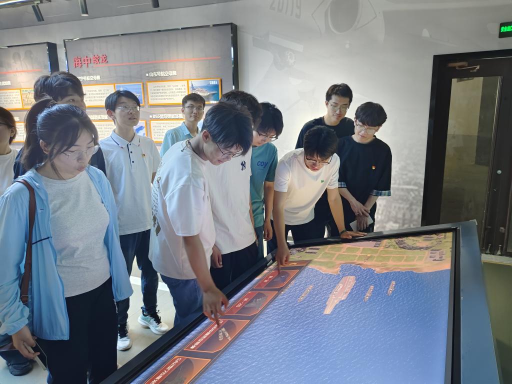 在讲解员的带领下,学生党员们先后走进国防安全探索营、人民防空训练营、德州人防大本营、应急逃生竞赛营进行参观,近距离接触了等比建造的山东舰航母、3D航母模型,以及模拟海战系统等。讲解员结合现场的模型、视频,向同学们介绍了我国的国防体系、军事装备以及国家安全教育的相关内容。同学们还体验了模拟电梯故障房,模拟地震小屋等体验项目,观看了关于国防安全教育的影片,深入了解了国防知识和人防基础技能。