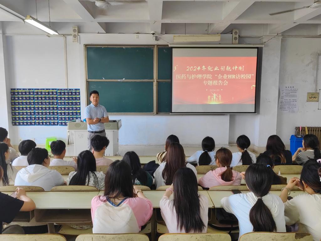为切实做好2024届毕业生就业工作,搭建毕业生与用人单位交流平台,引导同学们科学规划未来的职业发展道路,医药与护理学院于5月23日在体育楼301举办“企业HR访校园”专题报告会。报告优秀校友邀请赛诺菲中国投资有限公司地区经理王磊和江苏恒瑞医药股份有限公司临床监察员韩启奎为在校生开展职业规划指导。