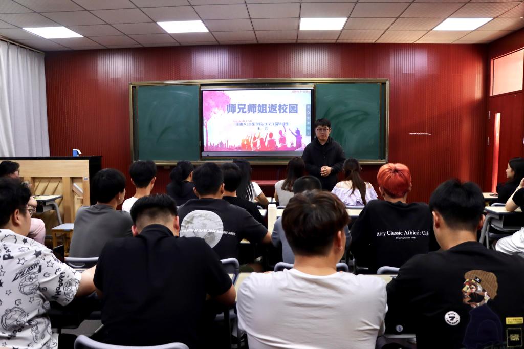 5月23日下午,音乐学院举办就业引航 青春建功——“师兄师姐返校园”经验分享会。此次会议邀请音乐学院省考上岸的19级毕业生王鑫进行分享。