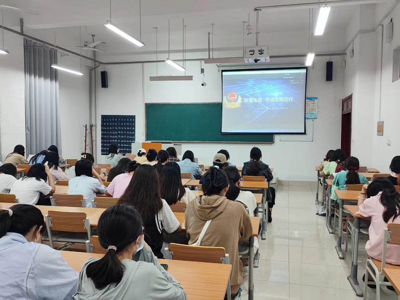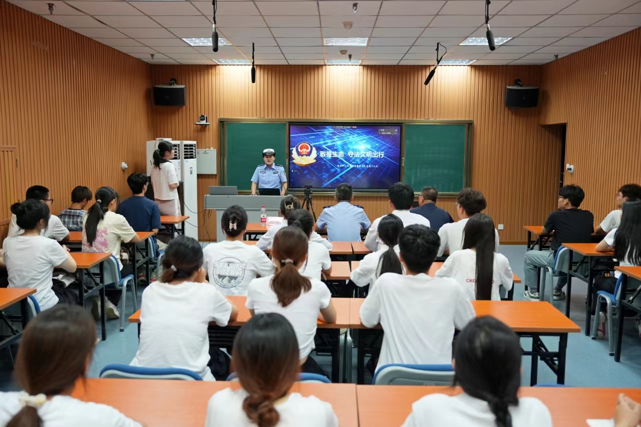 马敏警官通过讲解丰富的交通安全常识、典型的视频案例,深入浅出、形象生动的讲解步行、乘车、骑乘电动自行车等不同交通出行方式的注意事项、安全常识和道路交通安全法律法规。倡导广大学生不仅要做一名文明交通的参与者,更要成为交通法律法规的宣传员和监督员,积极向身边的同学、亲朋好友宣传交通安全知识,带动大家自觉遵守交通法规,抵制交通违法,摒弃交通陋习。