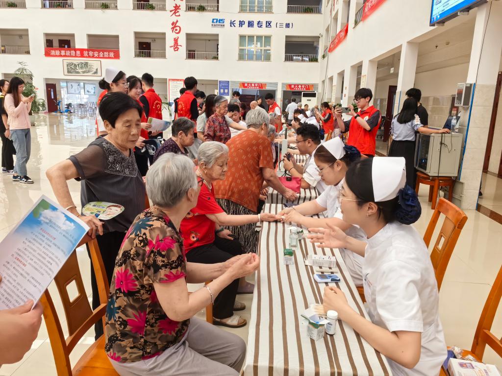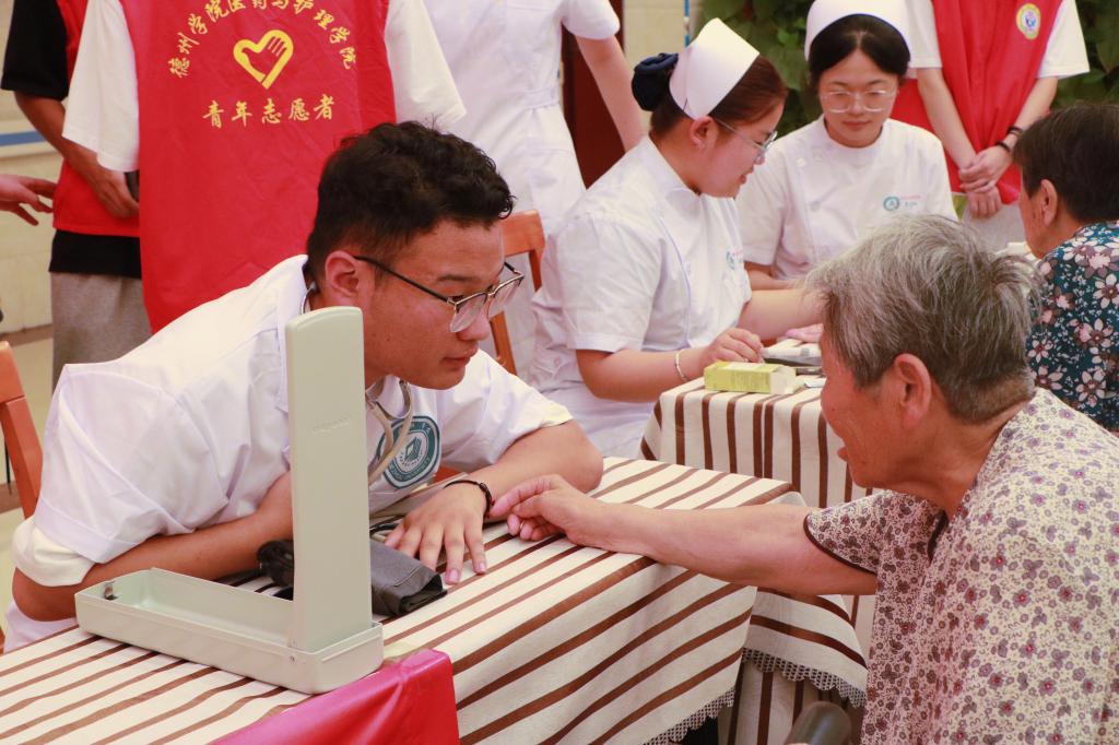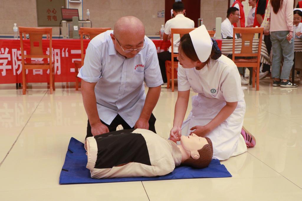 南丁格尔志愿者依托自身医学专业知识,整合学院资源,为老年人提供量血压、测血糖的健康义诊服务,用通俗易懂的语言向老人们提出日常预防、保健方案及治疗建议。志愿者发放健康常识单页,进一步加强老年人对疾病和慢性病的认识和防范。此外,志愿者针对养老护理人员开展了海姆立克法和心肺复苏术等应急救护科普培训,提升护理员在突发事件中的救护能力。活动最后,志愿者为老人表演中华优秀传统文化太极拳、舞蹈等,用自己的实际行动诠释了尊老、爱老、助老的传统美德,不仅让老人们感受到精神上的关爱,更让志愿者们践行了历史文化的传承,充分展现了新时代青年的责任与担当。