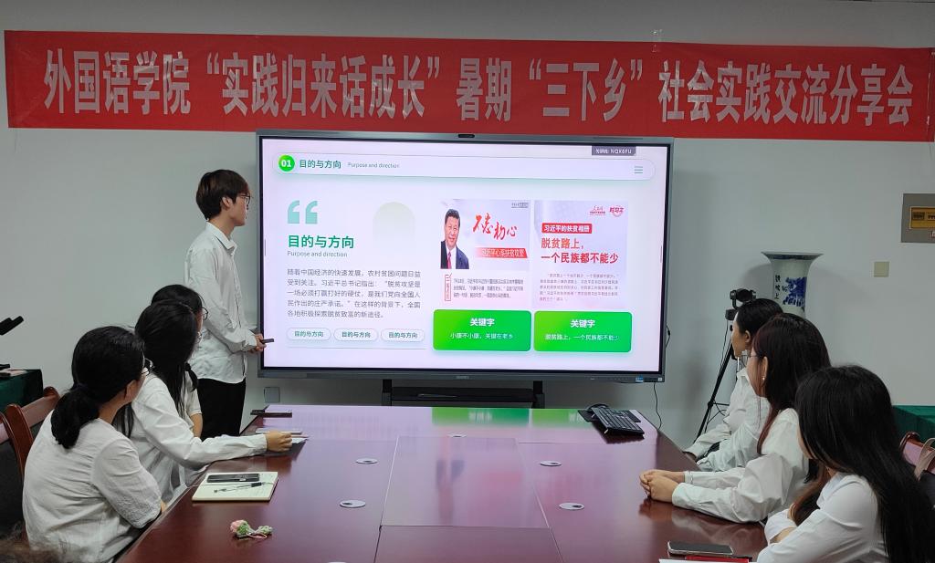 为深入学习宣传贯彻习近平新时代中国特色社会主义思想,引导和帮助广大青年在与社会实践相结合的“大思政课”中“受教育、长才干、作贡献”。9月13日,外国语学院在博文楼240室开展“实践归来话成长”暑期“三下乡”社会实践成果展示交流会。外国语学院相关负责人、专业教师及20余支社会实践团队参加。