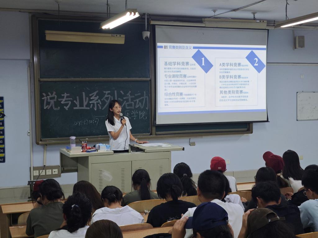 为进一步发挥朋辈榜样的示范引领作用,培养优良学风,激发学习内动力,增进同学们对专业知识和竞赛情况的了解,健康医学院于9月18日在求实楼213教室开展了一场以“竞赛筑梦,科研领航”为主题的朋辈交流活动,2024级全体本科班新生参与活动。