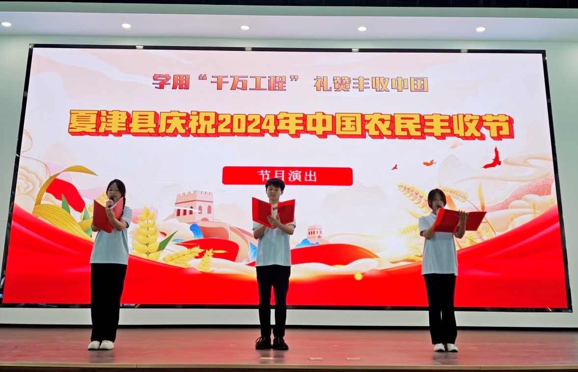 人间最美是金秋,五谷飘香乐丰收。9月20日,在第七个中国农民丰收节即将来临之际,“学用‘千万工程’礼赞丰收中国”夏津县庆祝2024年中国农民丰收节活动启动仪式在东李镇举行,商学院学生受邀参加活动演出。