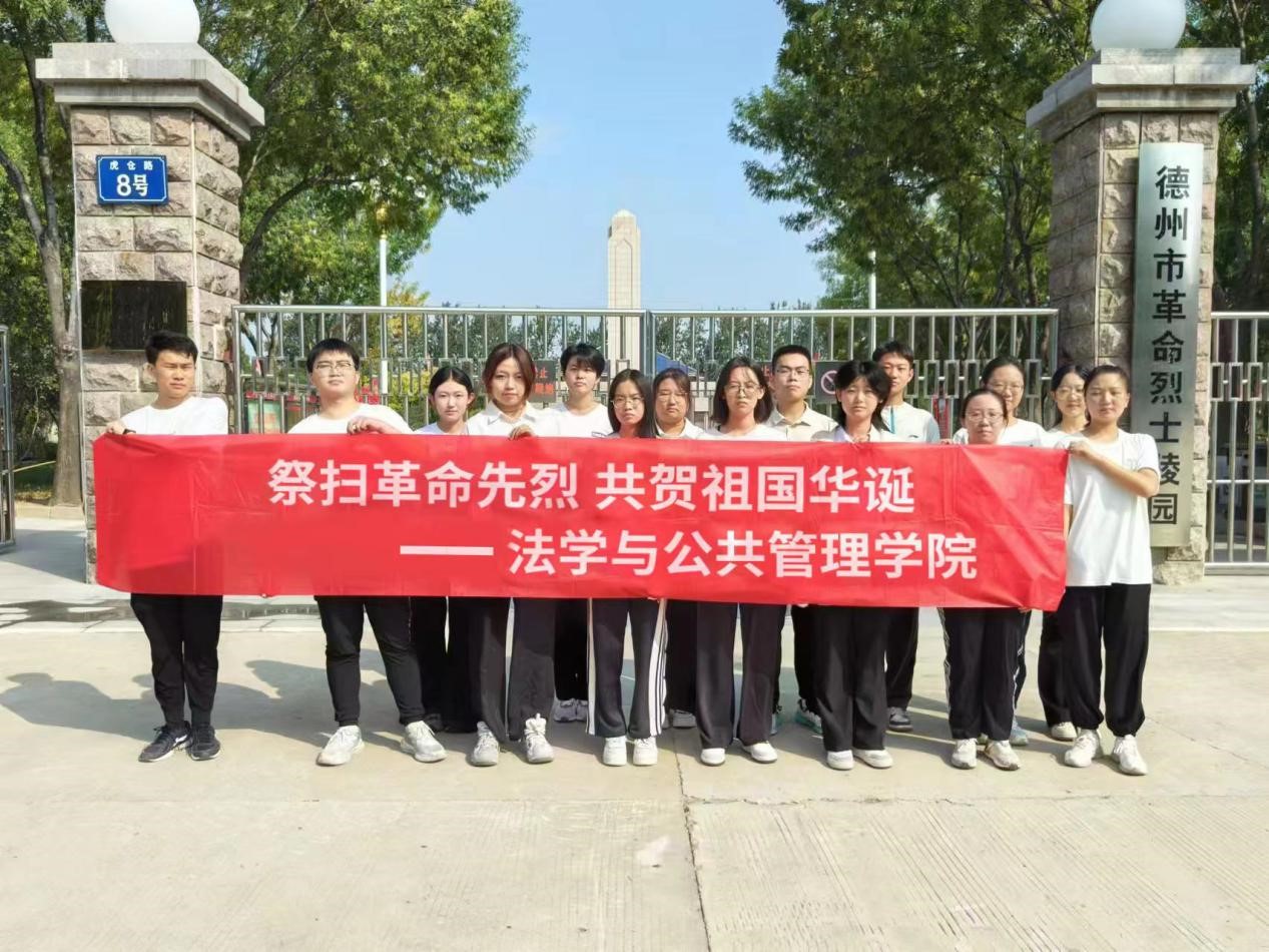 为铭记历史,缅怀先烈,进一步加强爱国主义教育,弘扬英烈精神,传承红色基因。在第十一个“烈士纪念日”来临之际,2024年9月28日,法学与公共管理学院组织学生党员、入党积极分子前往德州市革命烈士陵园开展“祭扫革命先烈,共贺祖国华诞”活动。