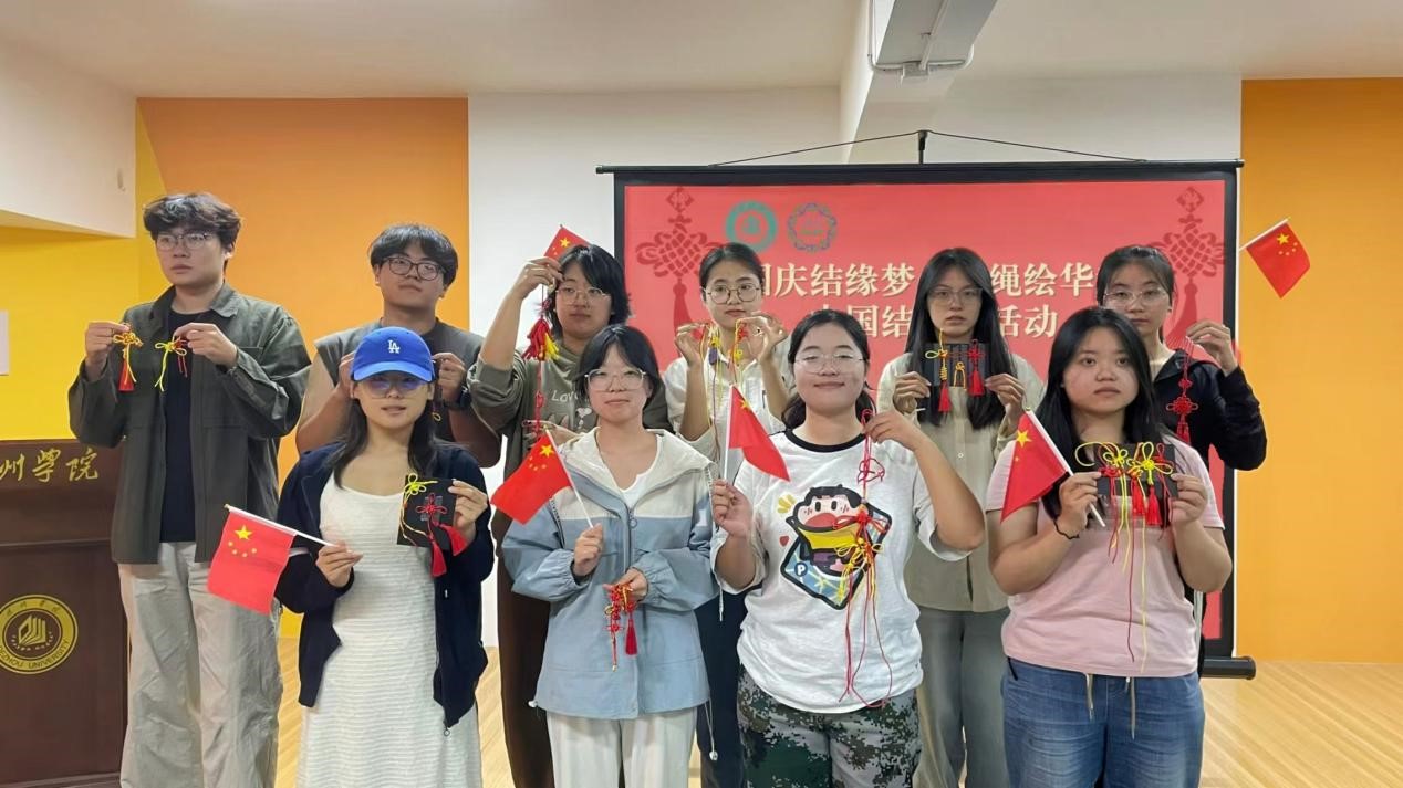 比赛伊始,负责人详细讲解了中国结的历史渊源、文化内涵及编织技巧,在讲解过程中,同学们不由地赞叹绳结艺术的丰富多彩与源远流长,更感受到了祖国文化的博大精深。随后,各学院同学纷纷动手编制,大家皆心怀赤诚,看一步、学一步、做一步,将手中的线反复缠绕,把手中的结反复拆解,逐渐将一根根简单的红绳变成一个个美丽吉祥、寓意团结和谐的中国结。在展示作品环节,各学院代表展示了自己的作品,对作品的构思及涵义进行了详细地介绍,并不约而同地向伟大祖国母亲表达敬意与祝福。最后,评委们认真欣赏每件作品,从创意性、美观性等方面进行评分。本次比赛圆满结束,参赛同学们共同编织出美好,以实际行动表达了对祖国的热爱,绽放出中华魅力。
