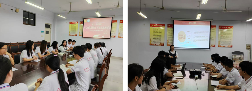9月30日,化学化工学院团委于求实楼举办“同心向党迎国庆,筑梦思政谱新篇”思政课。学院团委书记主讲,团干部代表参加。课上,主讲人领学爱国主义精神的内涵以及党的宗旨和使命等内容,带领团干部们重温党的历史,感受新中国由“站起来”、“富起来”走向“强起来”的光辉历程。现场气氛热烈,学生纷纷表示将以更加饱满的精神状态投入到学习工作中,争做堪当民族复兴重任的时代新人。