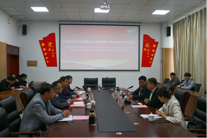 计算机与信息学院在明理楼0326会议室举办中菲友好交流座谈会,学院班子成员和教师代表、本科生代表参加。学院党委负责人致辞,欢迎格里·康提罗和迈克尔·布拉克两位专家来访交流。