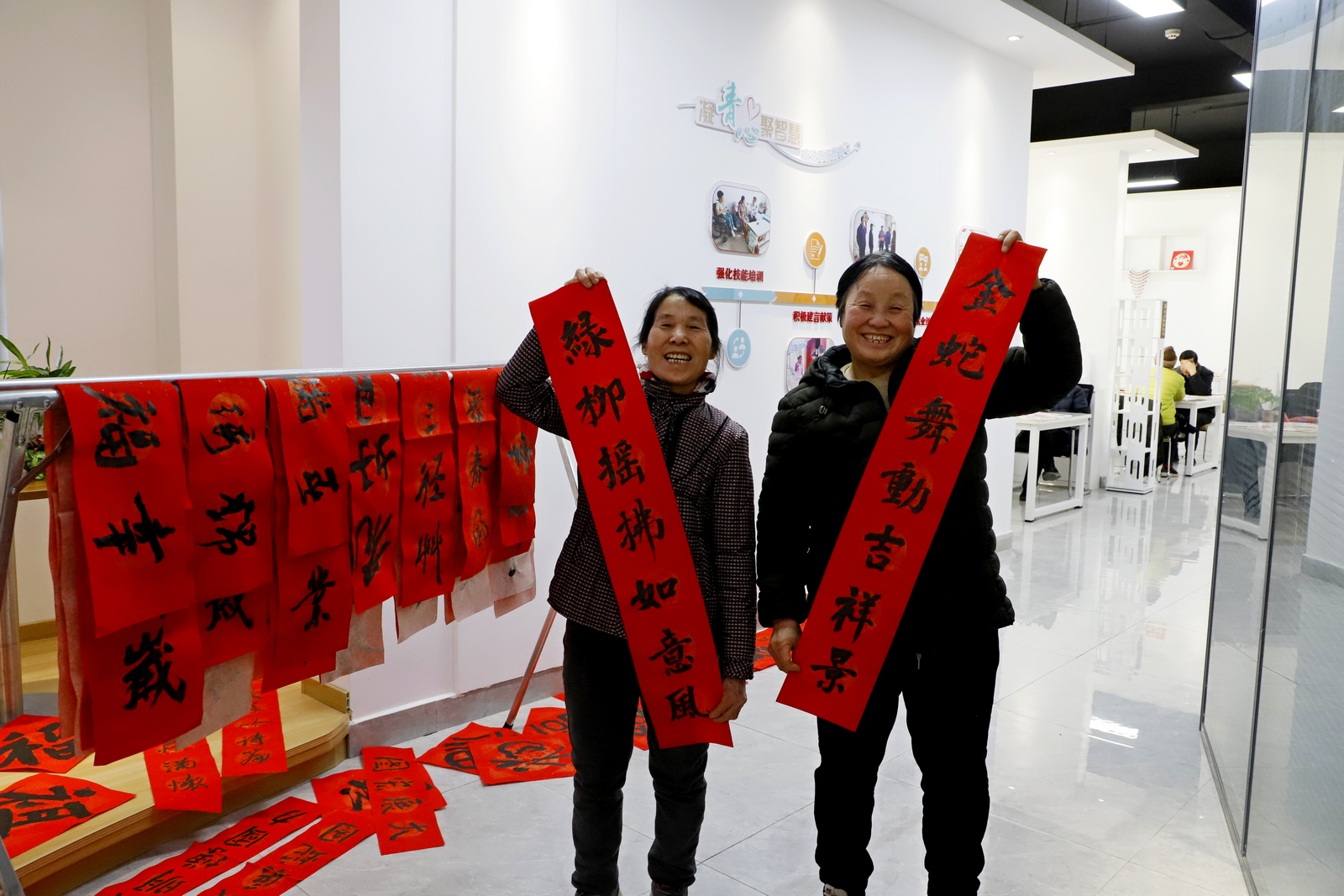 “金龙含珠辞旧岁,银蛇吐宝贺新春”“盛世龙腾留伟业,新年蛇舞起宏图”“山欢水笑普天乐,龙去蛇来遍地春”……每一句载满蛇年祝福语,气韵十足。在场的居民们一边欣赏称赞,一边精心挑选自己心仪的春联。
