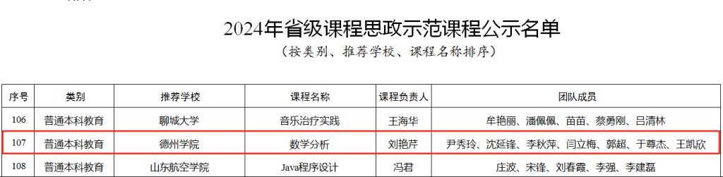 近日,山东省高等学校课程思政研究中心发布了《2024年省级课程思政示范课程(普通本科教育、研究生教育)名单公示》的通知,我校推荐的《数学分析》被认定为2024年山东省课程思政示范课程,截至目前学校已获批6门省级课程思政示范课程。