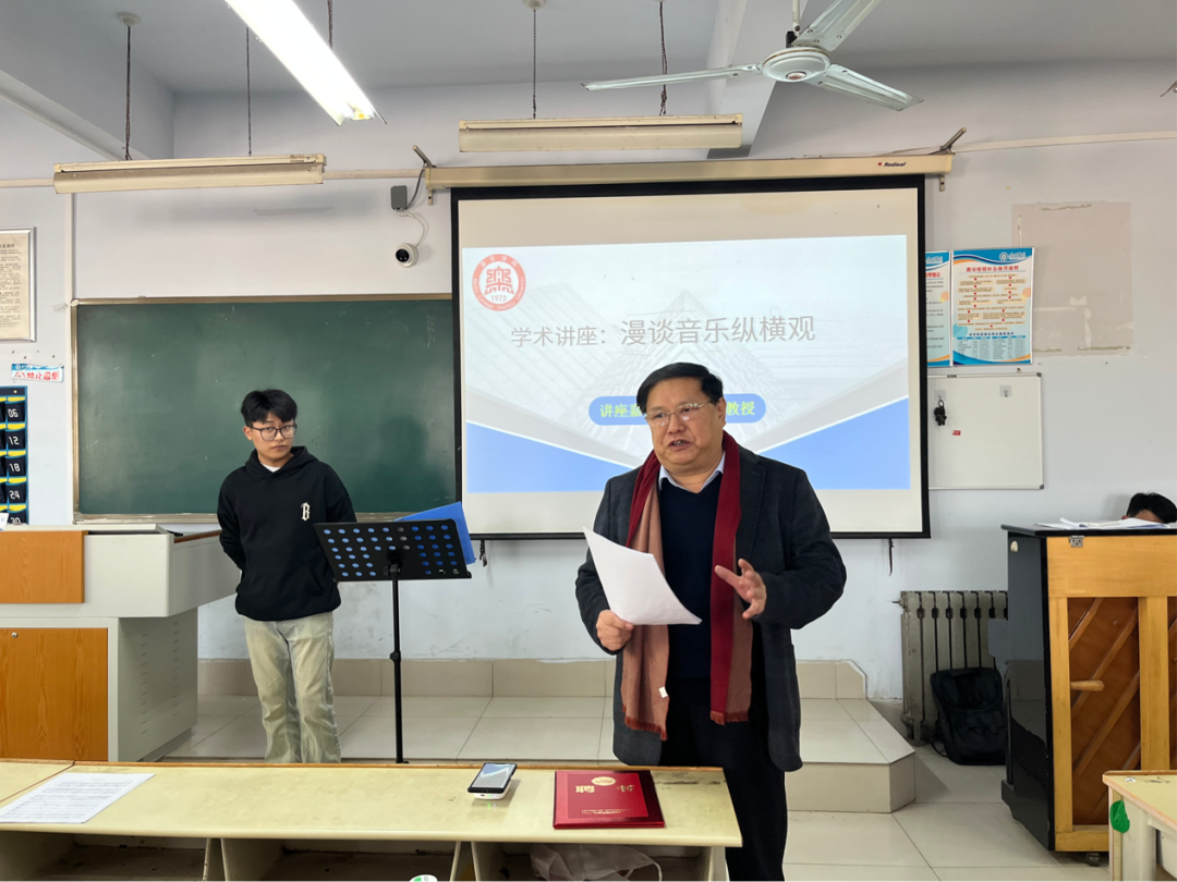 3月29日下午,音乐学院特邀河北经贸大学艺术学院王庆利教授举办聘任仪式暨学术讲座。本次会议在一楼会议室开展聘任仪式,副校长李永平以及音乐学院全体教师参加本次会议。在二楼多媒体教室开展“漫谈音乐纵横观”学术专题讲座。音乐学院教师代表、合唱团学生参与此次讲座。