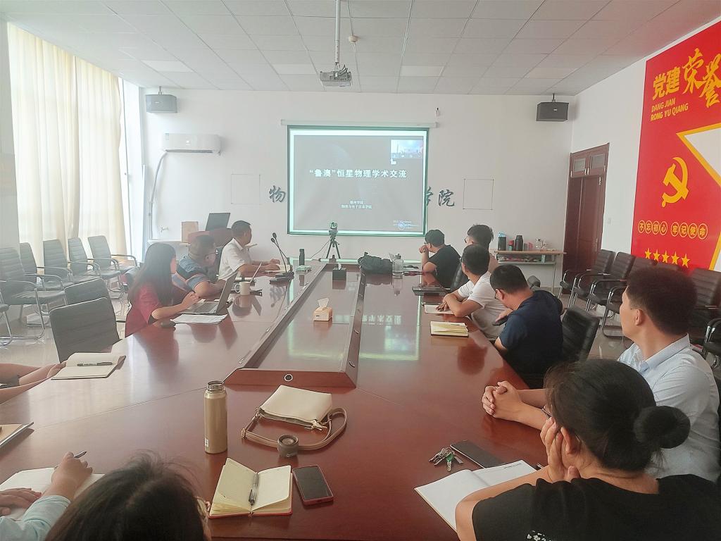 会议上,澳门科技大学蔡涛助理教授介绍了他在恒星物理研究领域中“旋转恒星中波的传播”方面的最新成果,物电学院负责人汇报了开云网址合集在恒星物理与星震学方面十五年来的研究进展,以及天体物理创新团队的组建、发展、规划等情况。特邀专家云南天文台的李焱研究员介绍了星震学研究的重要意义与未来重点研究方向,并对我校天体物理研究团队的未来发展给予了肯定和期待。参会人员均表示,双方在研究领域上有着很强的互补性与合作空间,希望通过本次学术交流会,加强双方的了解和联系,在科研人员互访交流、科研资源共享、联合项目申报等方面逐步开展实际合作,为推动鲁澳教育交流合作贡献力量。