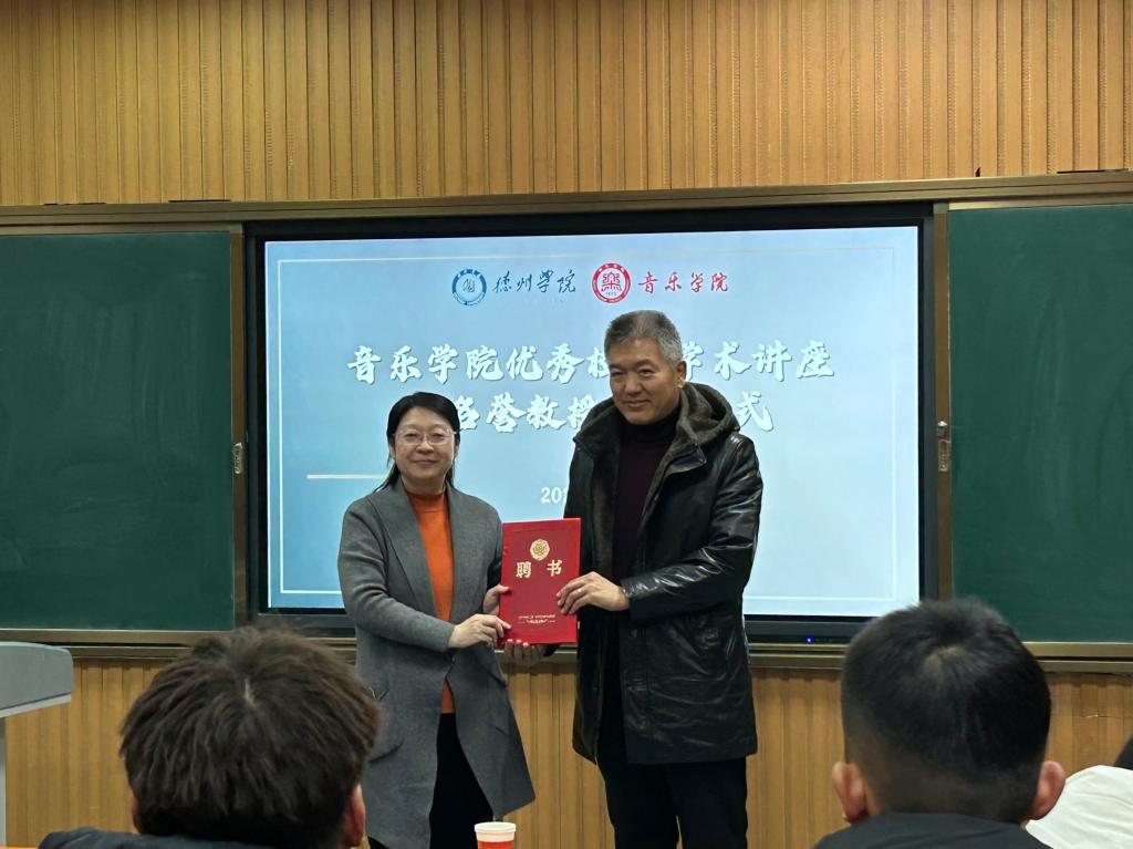 12月25日,音乐学院特邀优秀校友山东师范大学赵五洲教授来校开展学术讲座,并聘任为开云网址合集荣誉教授。讲座在厚德楼四楼413录播室进行,音乐学院党委政负责人及部分师生参加本次讲座。