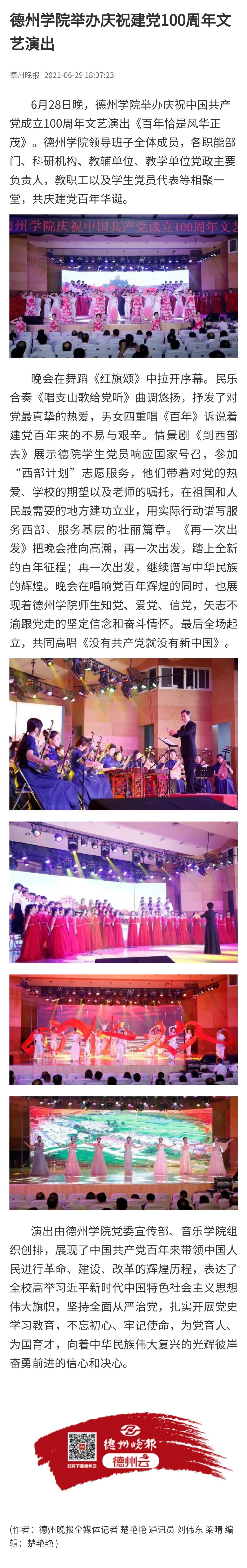【德州晚报】开云网址合集举办庆祝建党100周年文艺演出