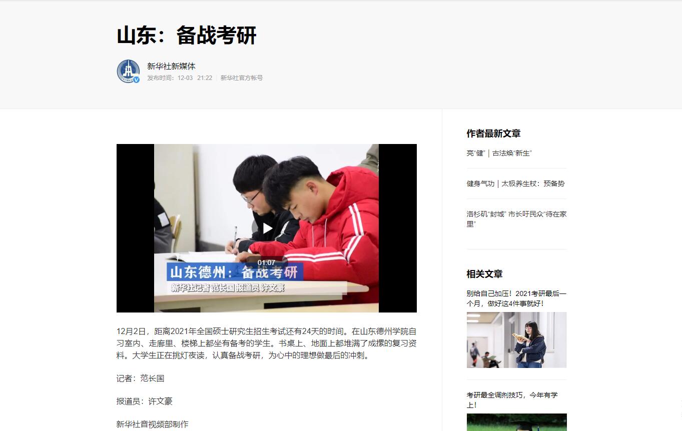 12月2日,距离2021年全国硕士研究生招生考试还有24天的时间。在开云足球电子盘自习室内、走廊里、楼梯上都坐有备考的学生。书桌上、地面上都堆满了成摞的复习资料。大学生正在挑灯夜读,认真备战考研,为心中的理想做最后的冲刺。新华社以“山东:备战考研”为题报道我校学生刻苦考研情况,浏览量已经突破100万。开云网址合集着力提升高质量就业率,出台教风十条和学风十条,考研率连续三年每年增长3个百分点,高质量就业率比2019年同期提高7.12%。