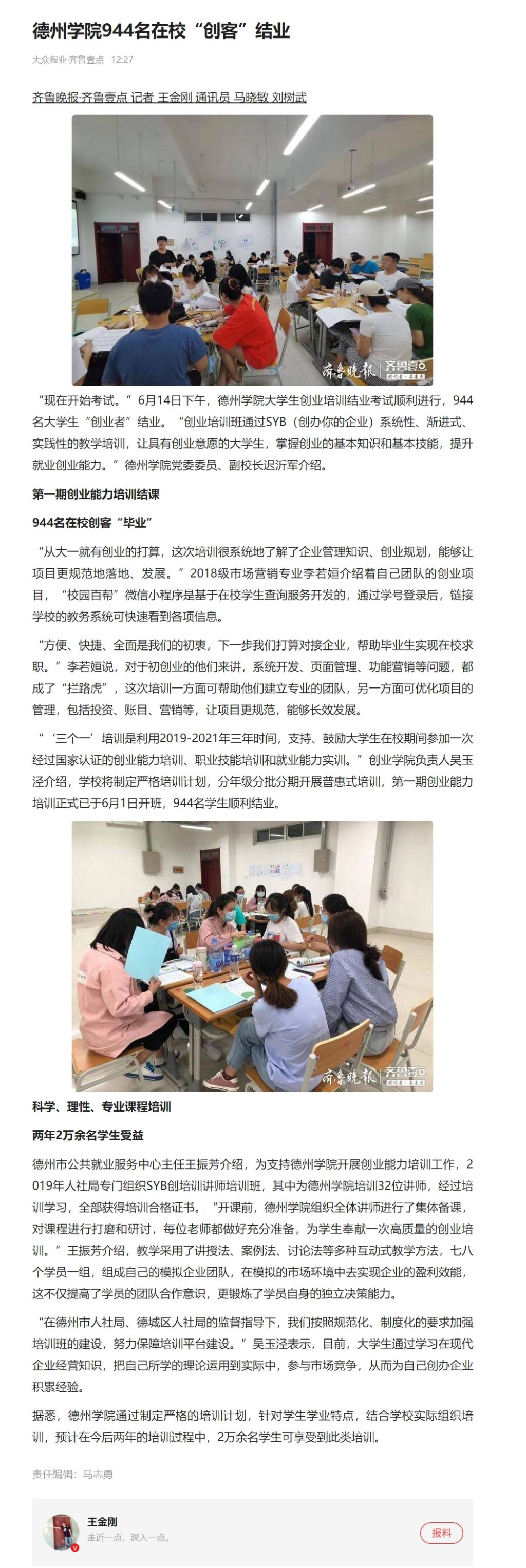 【齐鲁壹点】开云网址合集944名在校“创客”结业