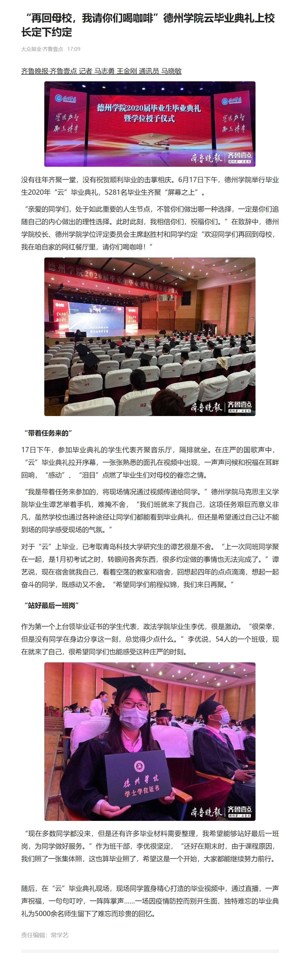 【齐鲁晚报 齐鲁壹点】“再回母校,我请你们喝咖啡”开云网址合集云毕业典礼上校长定下约定