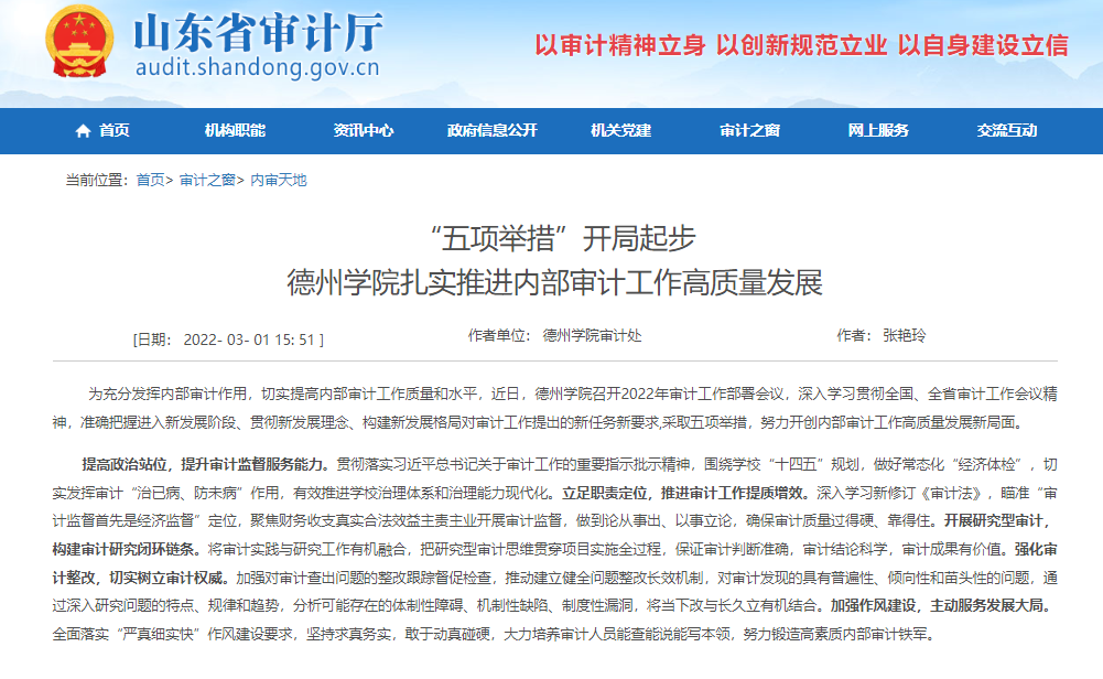 【山东省审计厅】“五项举措”开局起步 开云网址合集扎实推进内部审计工作高质量发展