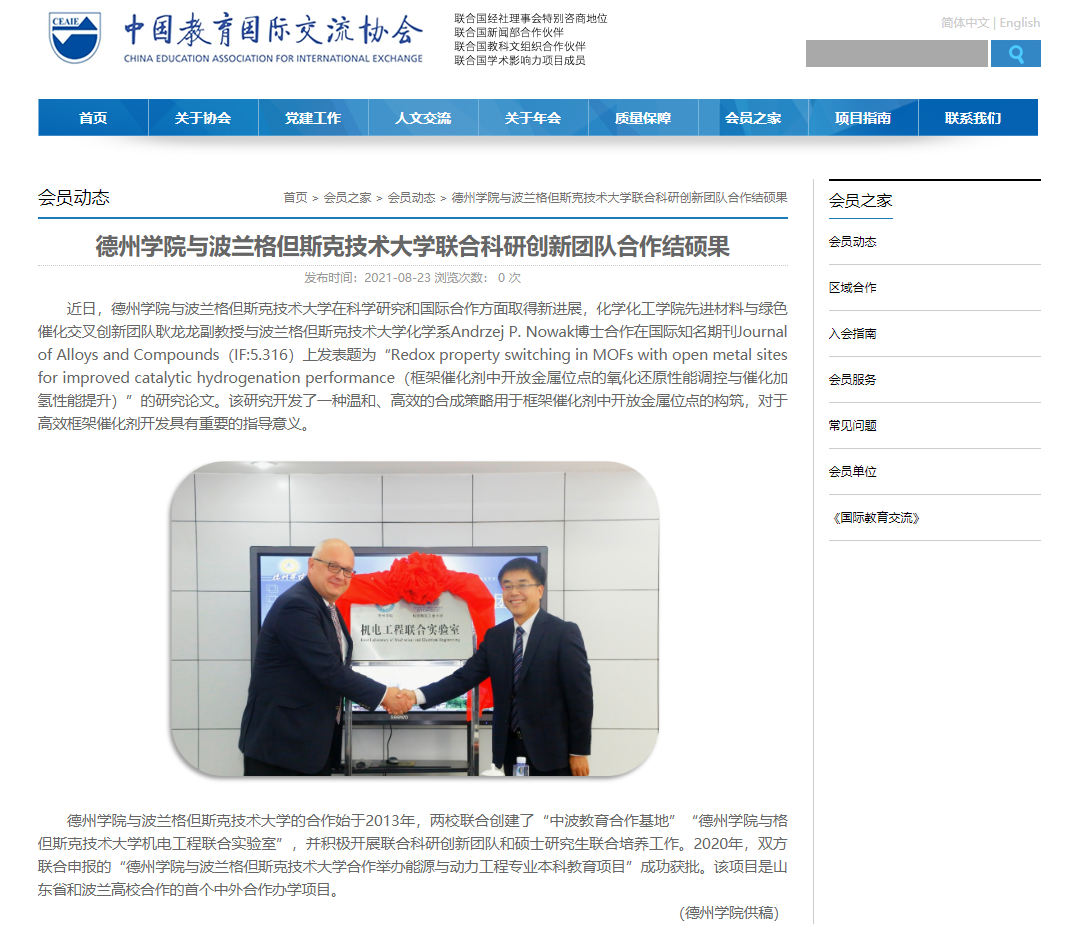 【中国教育国际交流协会、齐鲁网、环球周报】开云网址合集与波兰格但斯克技术大学联合科研创新团队合作结硕果