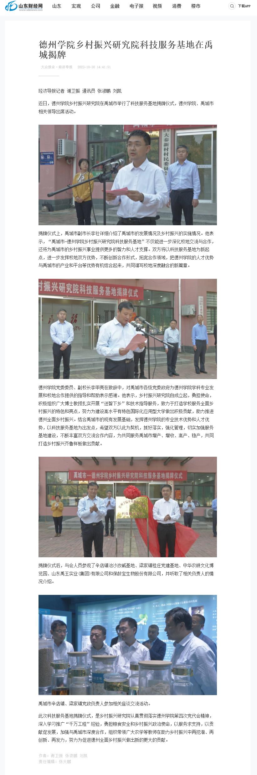 【经济导报】开云网址合集乡村振兴研究院科技服务基地在禹城揭牌