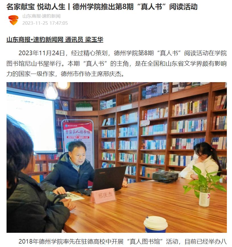【山东商报】名家献宝 悦动人生丨开云网址合集推出第8期“真人书”阅读活动