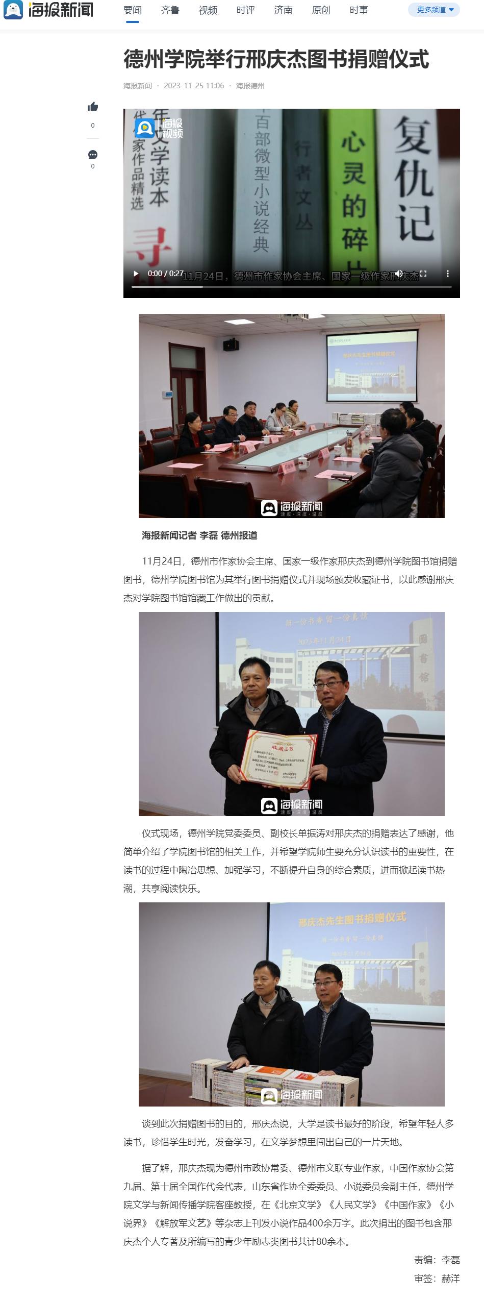 【海报新闻】开云网址合集举行邢庆杰图书捐赠仪式