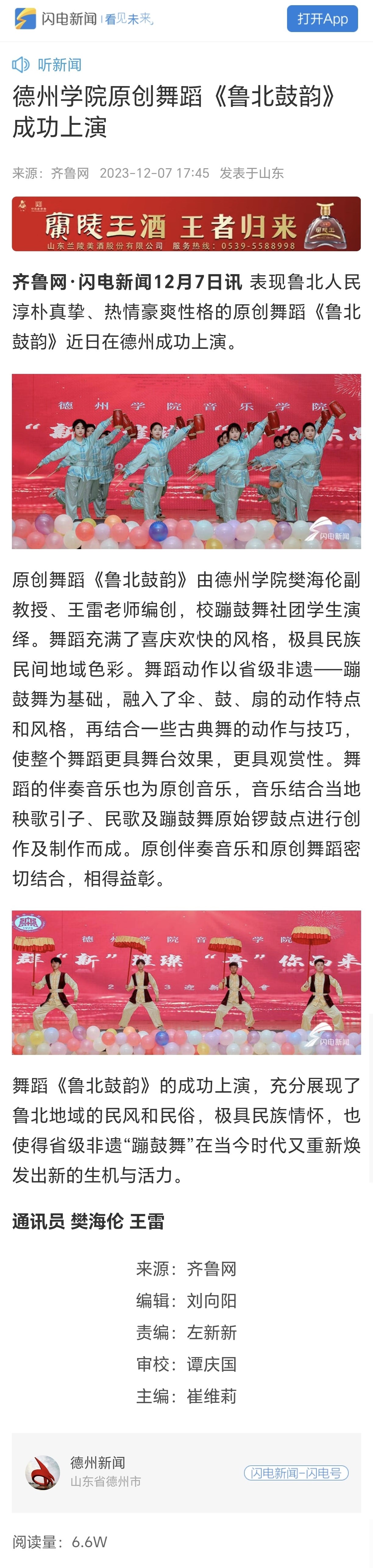 【闪电新闻】开云网址合集原创舞蹈《鲁北鼓韵》成功上演