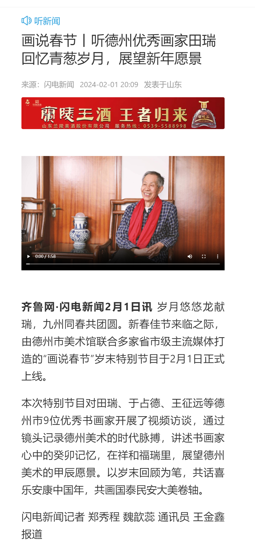 【齐鲁网 闪电新闻】画说春节丨听德州优秀画家田瑞回忆青葱岁月,展望新年愿景