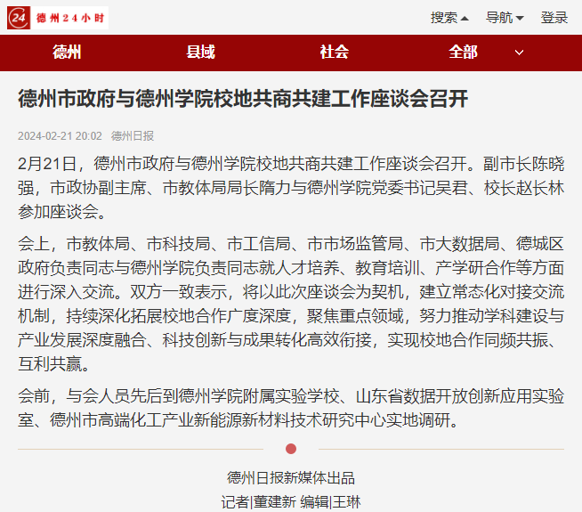 【德州24小时】德州市政府与开云网址合集校地共商共建工作座谈会召开