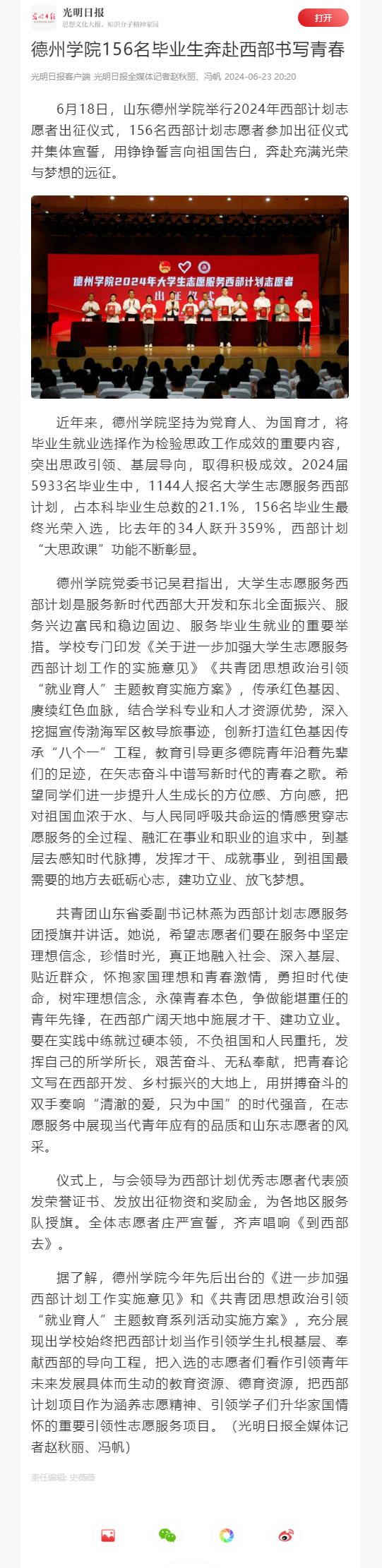 【光明日报】开云网址合集156名毕业生奔赴西部书写青春