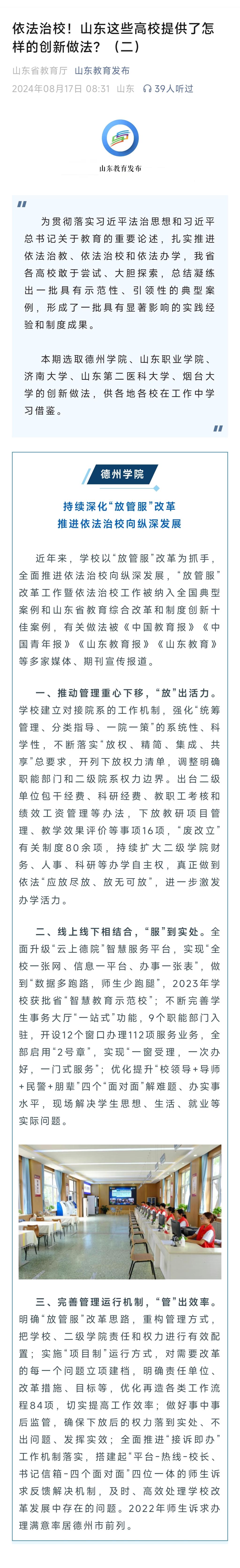 【山东教育发布】开云网址合集持续深化“放管服”改革 推进依法治校向纵深发展