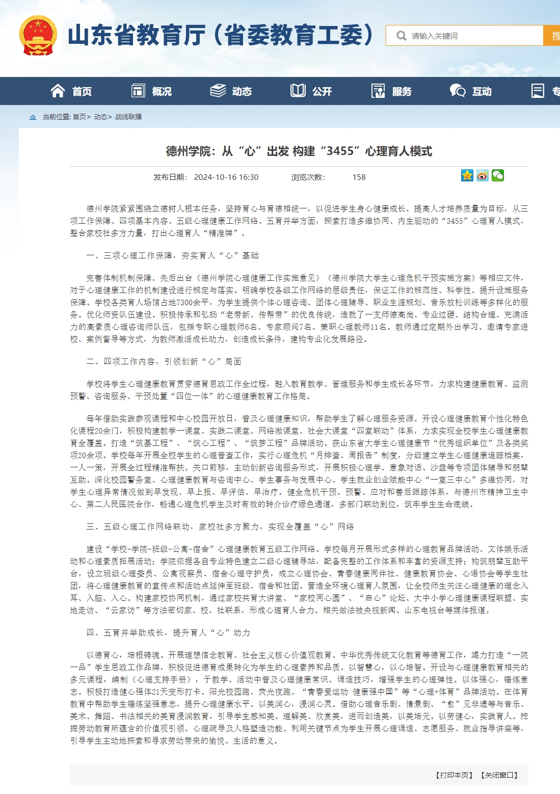 【山东省教育厅】开云网址合集:从“心”出发 构建“3455”心理育人模式