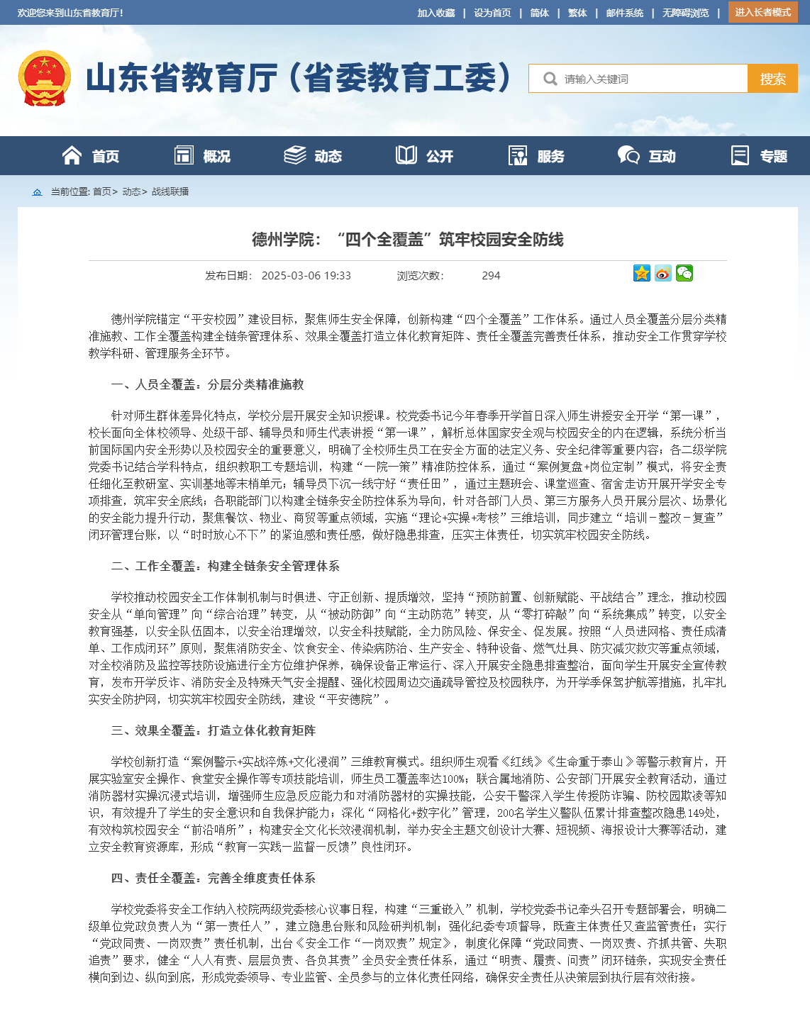 【山东省教育厅】开云网址合集:“四个全覆盖”筑牢校园安全防线