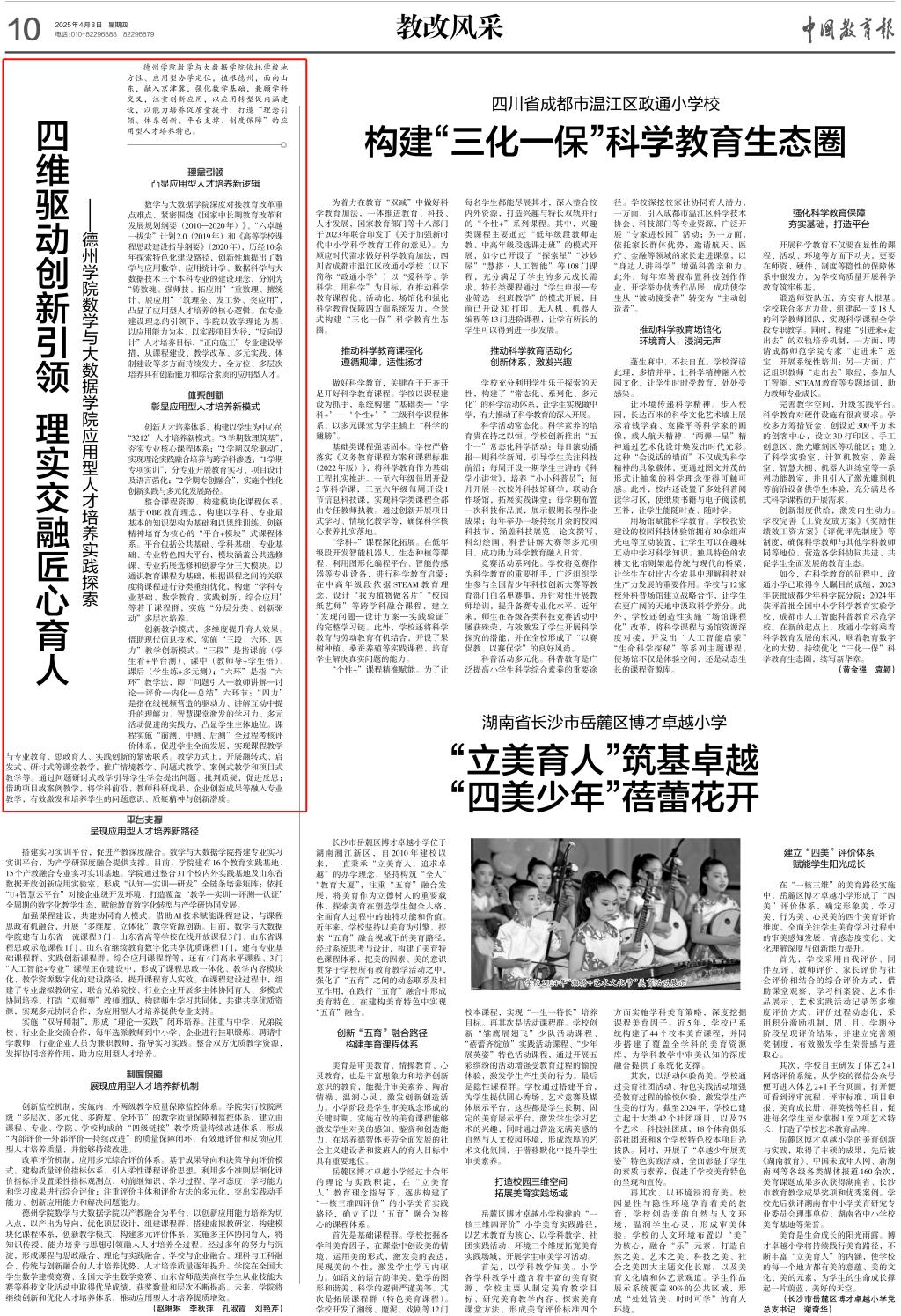 创新人才培养体系,构建以学生为中心的“3212”人才培养新模式。“3学期数理筑基”,夯实专业核心课程体系;“2学期双轮驱动”,实现理论实践融合培养与跨学科渗透;“1学期专项实训”,分专业开展教育实习、项目设计及语言强化;“2学期专创融合”,实施个性化创新实践与多元化发展路径。