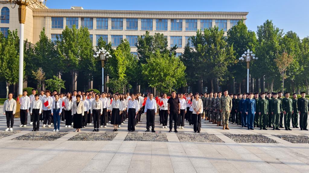 为深入学习贯彻习近平总书记在纪念中国人民抗日战争暨世界反法西斯战争胜利80周年大会上的重要讲话精神,传承和弘扬伟大抗战精神,凝聚奋进力量,9月29日上午,商学院在腾飞广场隆重举行“与国同梦共奋进,挺膺担当向未来——‘庆国庆’国旗下的思政课”主题教育活动。商学院党委领导班子,党员教师代表,全体辅导员,学生党员、入党积极分子等200余人参加活动。