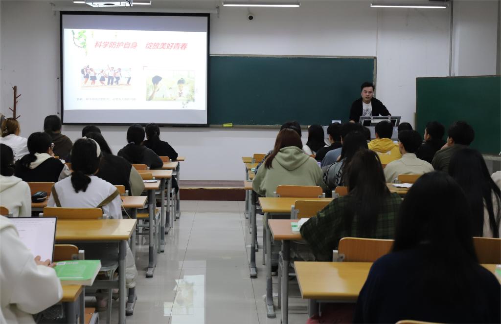 为提高同学们的自我保护意识,助力普及预防艾滋病和梅毒的相关知识,4月10日晚,经济管理学院于明理楼0364开展了以“科学防护自身 绽放美好青春”为主题的健康知识宣教活动,德州市妇幼保健院皮肤科王玉栋主任主讲。