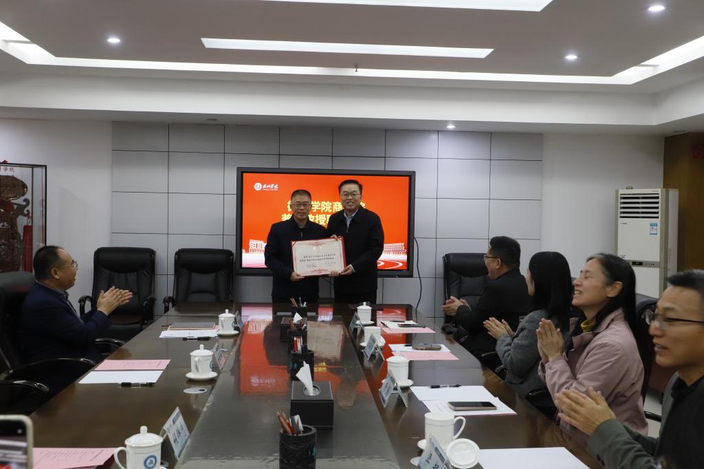2025年12月9日,南开大学经济与社会发展研究院博士生导师、产业经济研究所所长杜传忠教授应邀受聘商学院兼职教授,并为商学院教师开展国家社科基金申报专题指导。商学院全体教师参加专题指导报告。