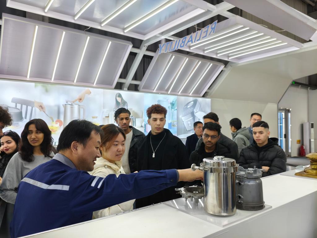 在实地参观考察中,留学生群体展现出浓厚的兴趣与高度的参与热情。企业负责人引领留学生依次参观产品展示中心与智能化生产车间,系统讲解宁津特色产业的创新成果与发展规划。参观过程中,留学生思维活跃、踊跃提问,负责人结合实例详细解答,现场交流氛围热烈。在产品体验区,留学生亲自动手操作器械部件,感受产品的精密构造与优良性能,负责人与技术人员全程指导,同步讲解设计原理与工艺特点,实现抽象商业理论与具体产业实践的有机结合。这种寓教于行的沉浸式体验获得留学生的广泛好评。一位留学生表示:“能够亲手触摸高质量产品并听取一线管理者分享,比课堂案例更具生动性与深度。”